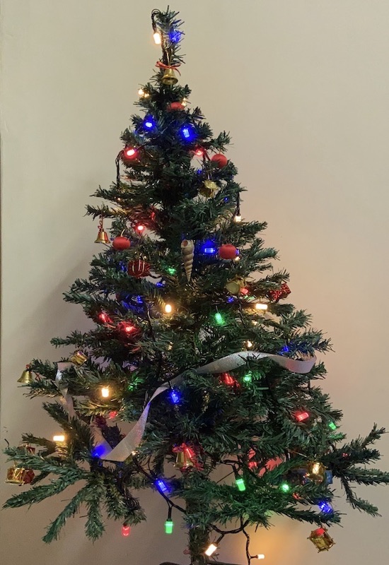 Fear of the Covid 19 virus has meant there haven’t been many people out and about in the last 3 weeks. Coloured lights and Christmas trees have begun to illuminate even the quiet backstreets of town.