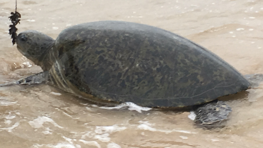 It is named after its olive/rust coloured shell. They nest annually, and many lay their eggs on Kosgoda Beach, depositing more than 150 at one time. They are omnivores, eating crustaceans, fish and some marine vegetation.