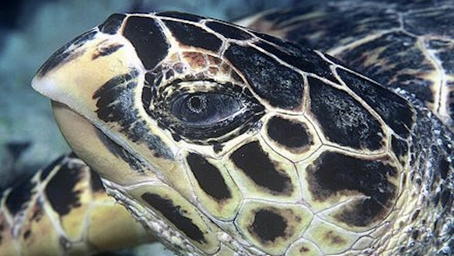 Hawksbill Turtle – Critically endangered it is rarer than the Green Turtle and much smaller reaching a maximum length of 90cm and weighing 50-70kg. It gets its name from its narrow head and bird-like beak, which is used to catch animals hiding in small crevices.
