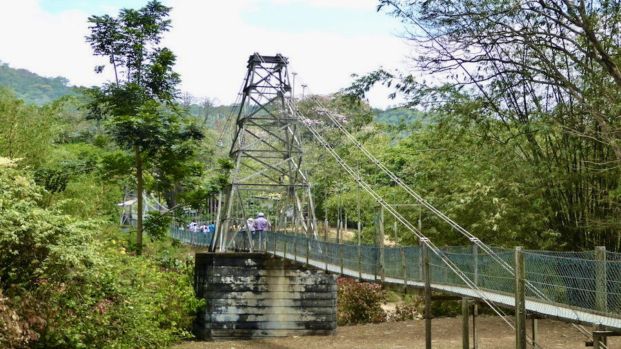 The suspension bridge over the Mahaweli River is carefully controlled by security. Only a few people allowed on it at any one time to cross and then come back.