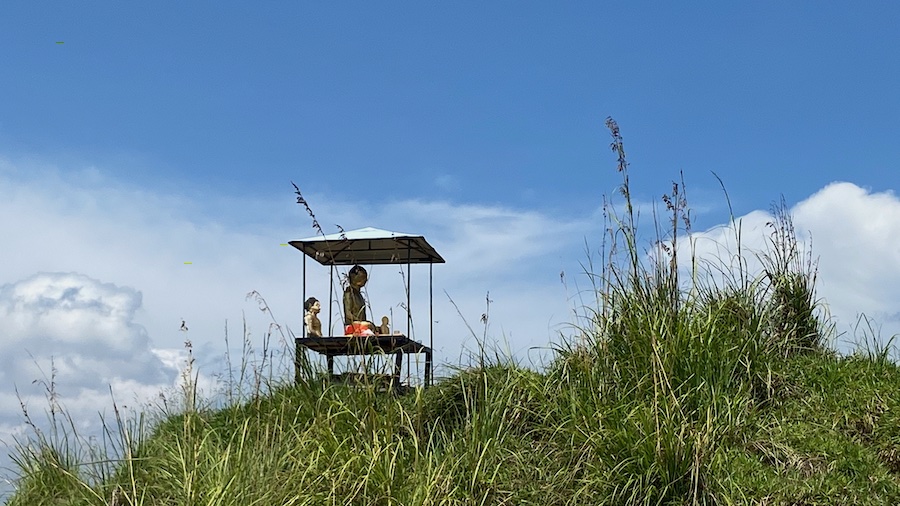 Finally, arriving at the summit there is a small Buddha statue and shrine, the inevitable dog hoping to share a picnic and a man selling chilled bottles of water.