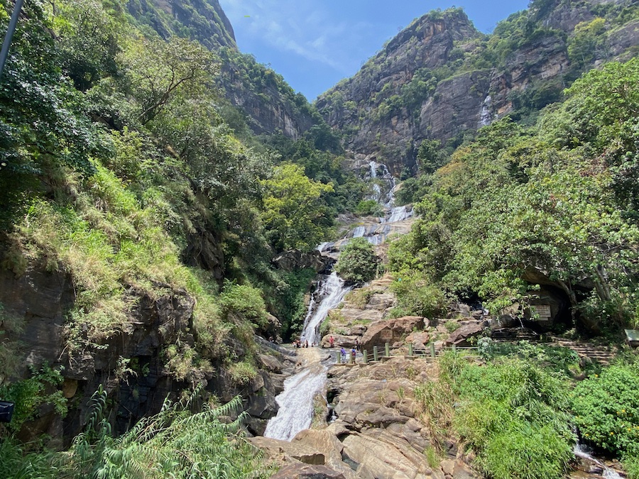 One of the widest waterfalls in Sri Lanka, the water drops 82 metres.  Depending on the season it can be a modest amount or a rushing torrent coming over the road.