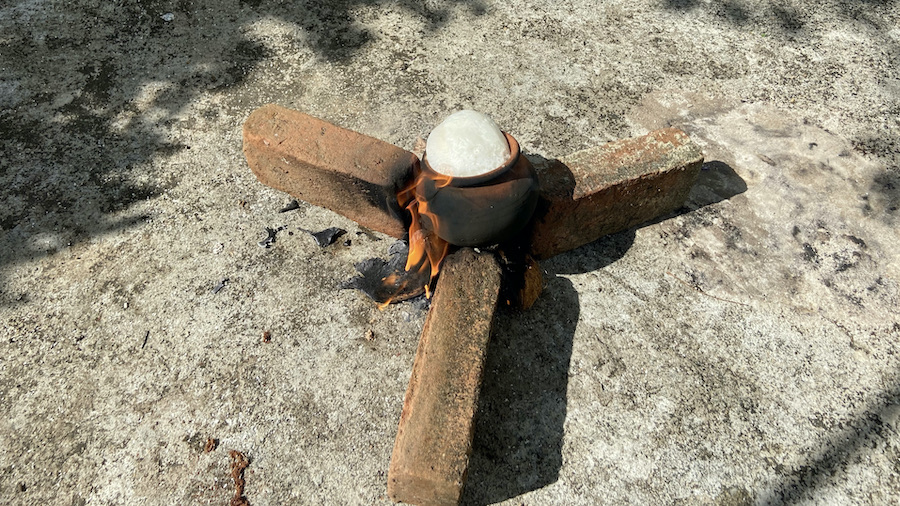 Cultural rituals begin soon after the start of the new year. House cleaning and the lighting of an oil lamp are followed by the lighting of a fire over which a clay pot containing milk is placed. The milk is allowed to boil over, symbolizing happiness and prosperity. The remaining milk used to make kiribath (milk rice).