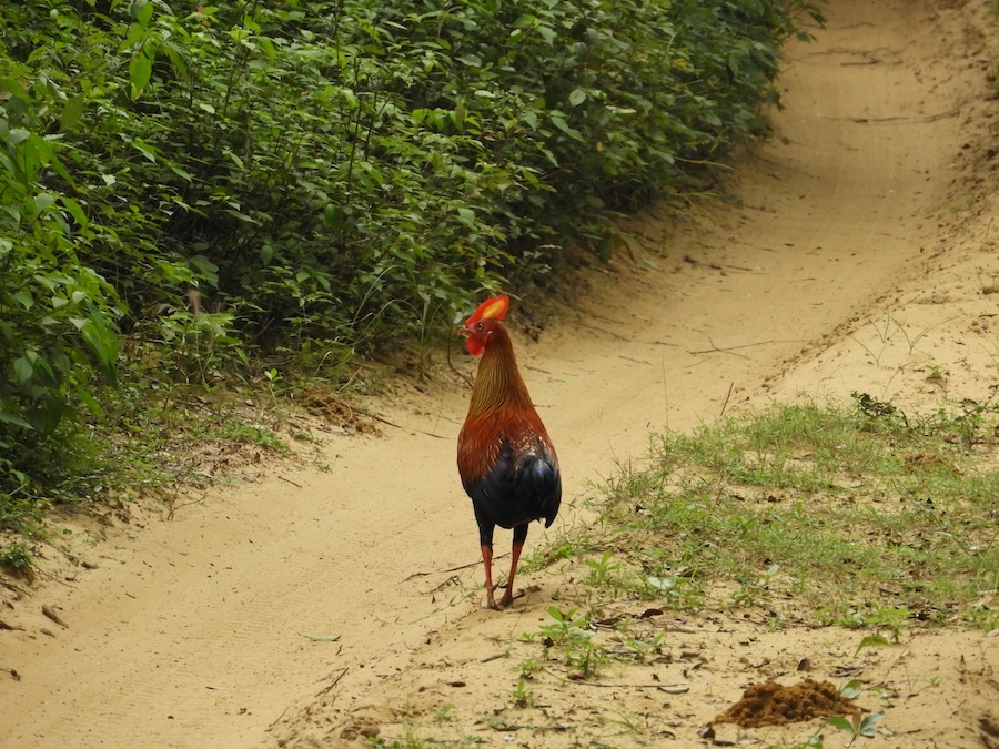 A little black naped hare solemnly watched us before darting back under cover, then a Sri Lankan jungle fowl, the national bird, strutted nonchalantly across our path.