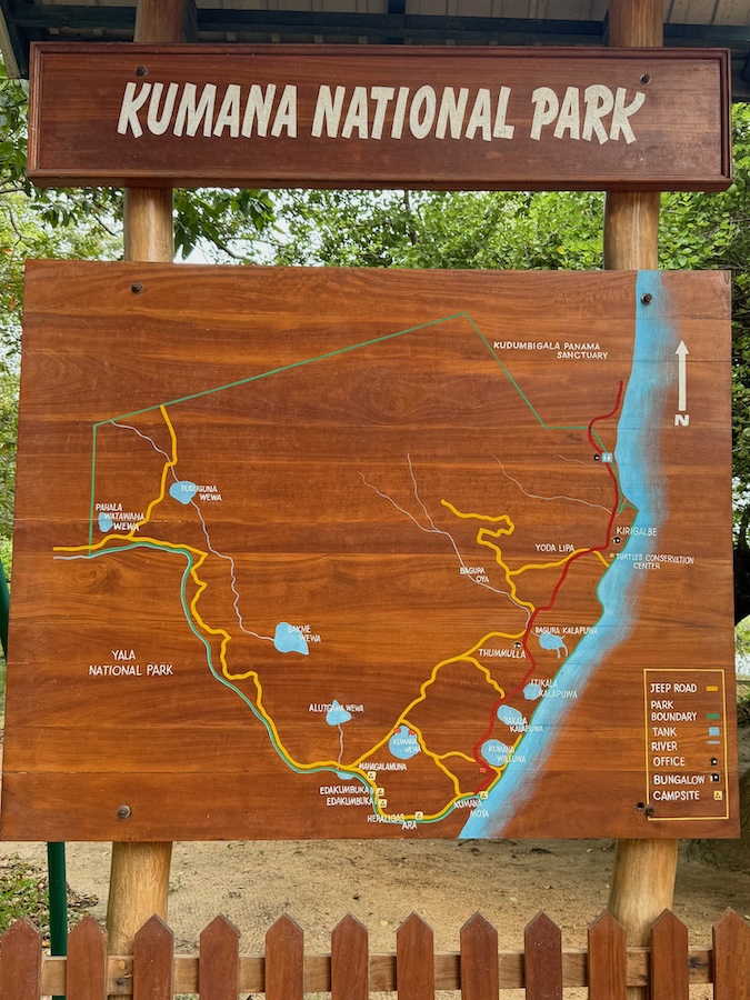 Kumana National Park is in the south eastern corner of the island, north of Yala, covering an area of almost 45,000 acres. It is a one hour drive from Arugam Bay.