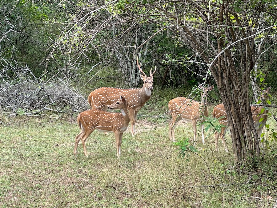 Spotted deer stared at us ready to flee at the first sign of danger. A ruddy mongoose scampered through the grass beside us.